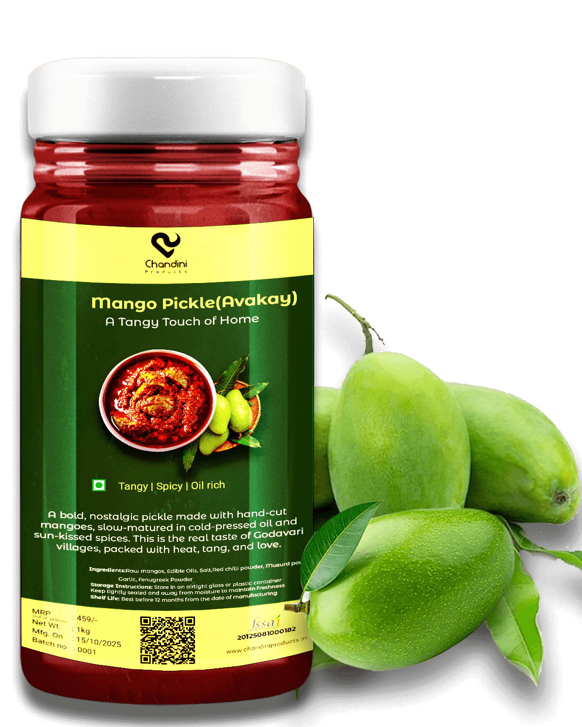 “Chandini’s mango pickle reminded me of my childhood. The flavor is so authentic and pure — no preservatives, just real taste. It feels like home in every bite!”.